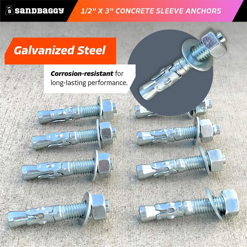 Sandbaggy 1/2" x 3" Concrete Wedge Anchors Bolts - Hex Head (Galvanized) - Masonry, Concrete (4, 1/2" x 3")