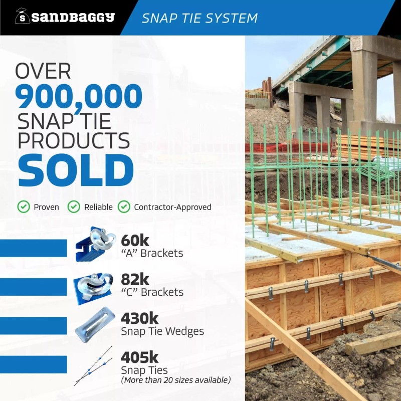 - Over 300,000 Snap Ties Sold! Trusted by concrete contractors across the USA, over 300,000 Sandbaggy Snap Ties have been used across America.