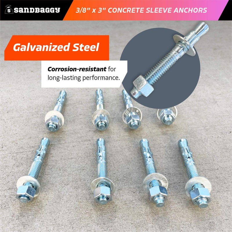 Sandbaggy 3/8" x 3" Concrete Wedge Anchors Bolts - Hex Head (Galvanized) - Masonry, Concrete (10, 3/8" x 3")
