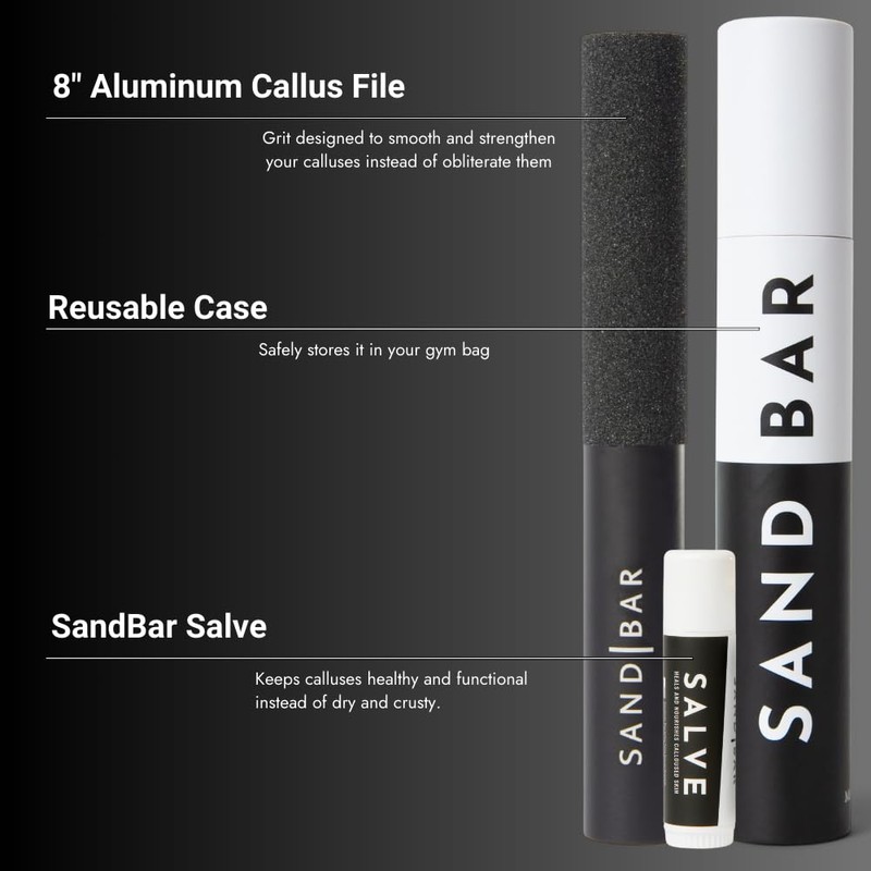 • Smart Finger and Hand Callus Care - SandBar simplifies callus management. Instead of using a callus shaver, optimize your calluses so they are always in peak condition. Our Callus File for Hands is made for relentless athletes, WOD enthusiasts, Olympic lifters, blue-collar professionals, elite gymnasts, Ninja Warriors, and experienced climbers who rely on their calloused hands.