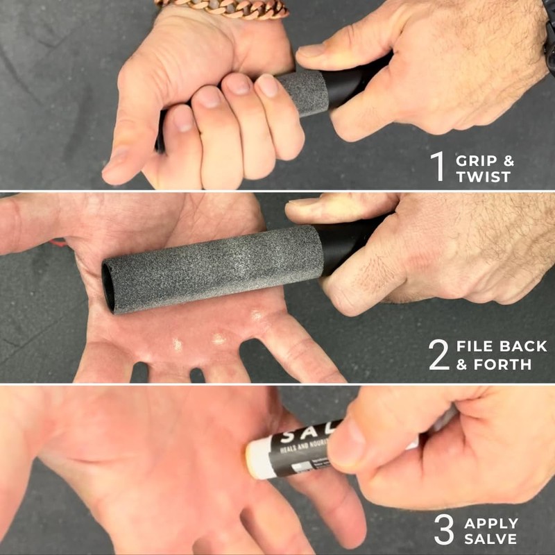 • Callus Salve Included - Revitalize your calluses naturally with SandBar nourishing salve. Restores your natural calluses' pliability. No more dry crusty calluses to pick or gnaw on; your hands (your lover) will thank you. Accelerates healing and prevents infection. No greasy residue or skin softeners.