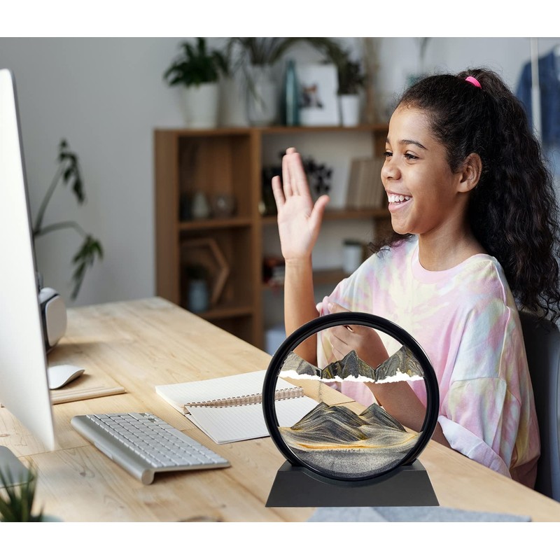 - RELAXING SAND ARTThe dynamic sand picture can be rotated freely in 360, create a new sand photo with each turn, slowly forming deserts, oceans, mountains of various shapes. Watching the colored sand slowly falling, which can relieve stress, relax your eyes, cultivate patience. Perfect for office workers, students, art creators, and people who work with computers for a long time.
