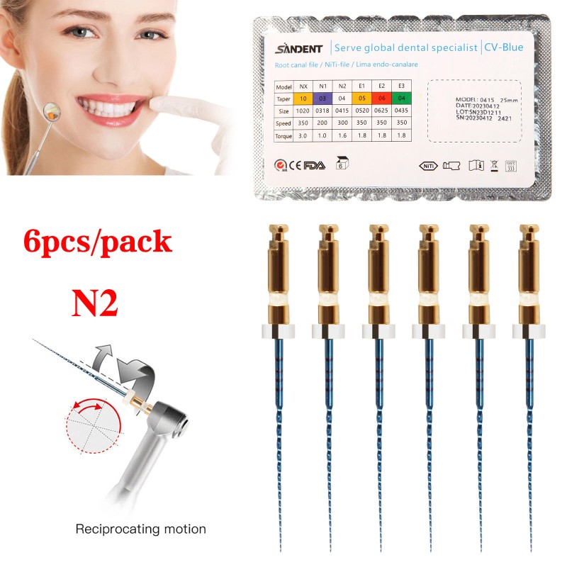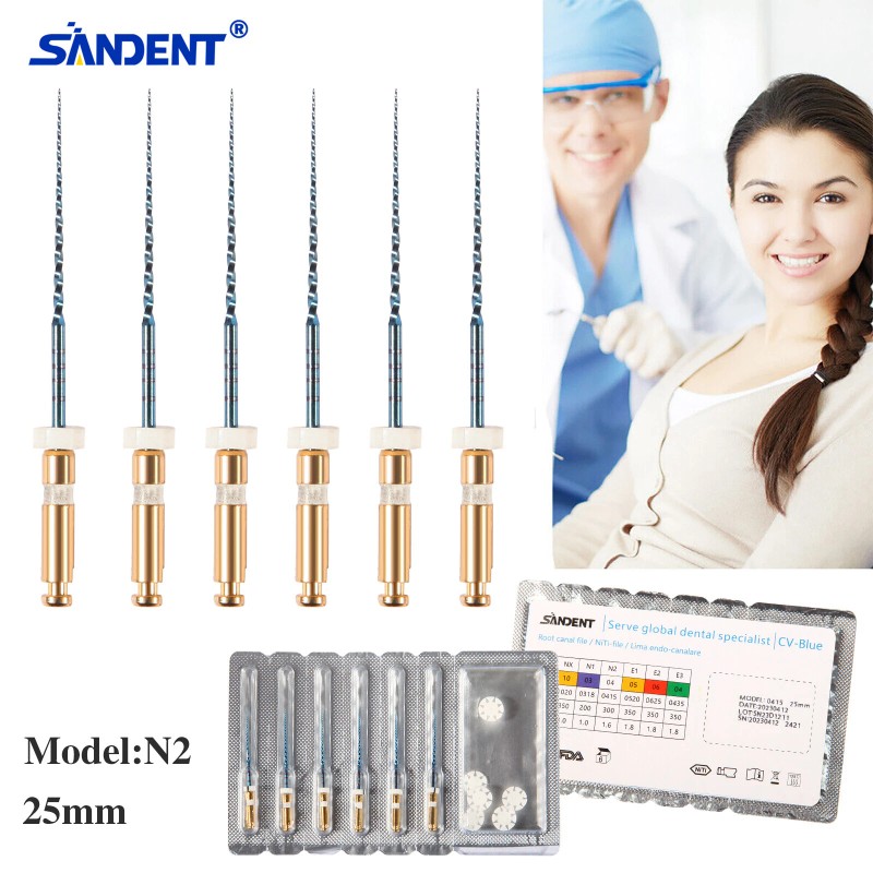 Sandent 6X Dental Endo Gold Taper NITI Rotary Files Engine Use Curved Canal 19/25mm YAX - N2 25MM
