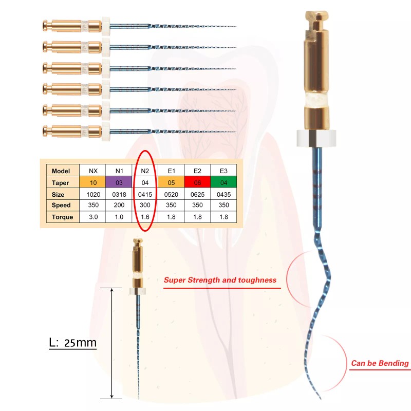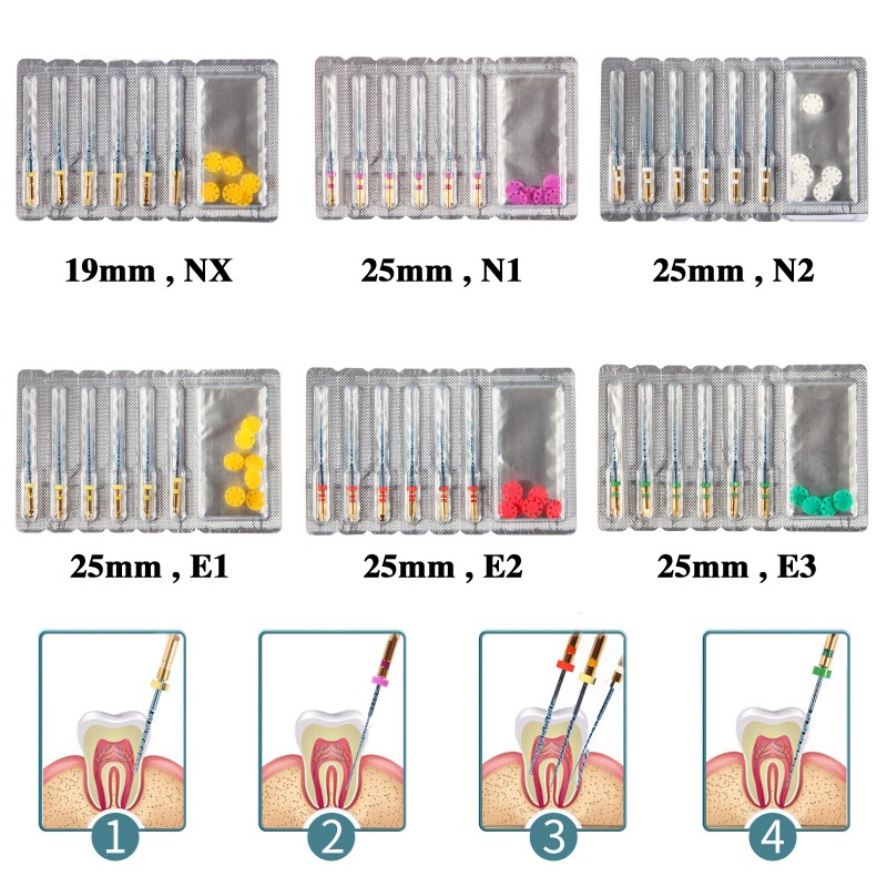 Endo files applies to endo motor for the root canal treatment in the root canal therapy such as pulp necrosis, chronic pulpitis, chronic apical periodontitis, pulp-periodontal syndrome and for who has system disease which not suitable for teeth extraction but in need of treatment or keep offending teeth temporarily.