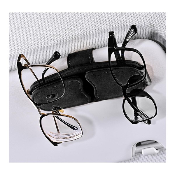Sandfren Sunglasses Holder for Car Sun Visor, Magnetic Leather Visor Eyeglasses Hanger Double Clip, Automotive Glasses Mount Organizer, Universal Vehicle Interior Accessories (Black)