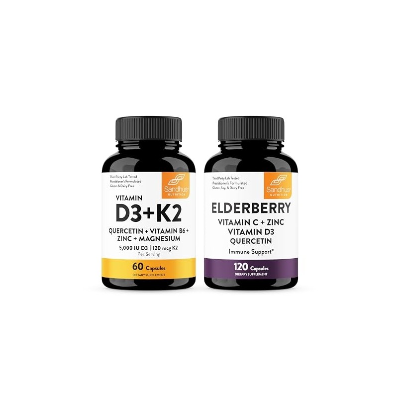 Sandhu's Vitamin D3 K2 with Quercetin Bundle with Elderberry Capsules | Supports Immune, Muscle, Teeth Health & Energy