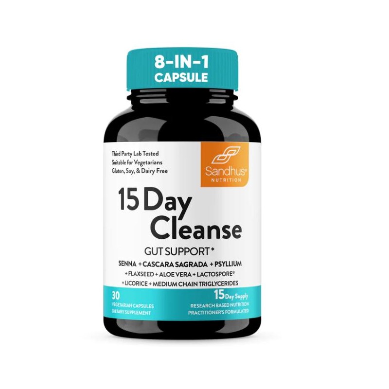 【Sandhus】15 Day Cleanse 30 Ct, Advanced Formula with Senna, Cascara Sagrada & Psyllium Husk, Non-GMO, Made in USA Edible Fitness Healthcare