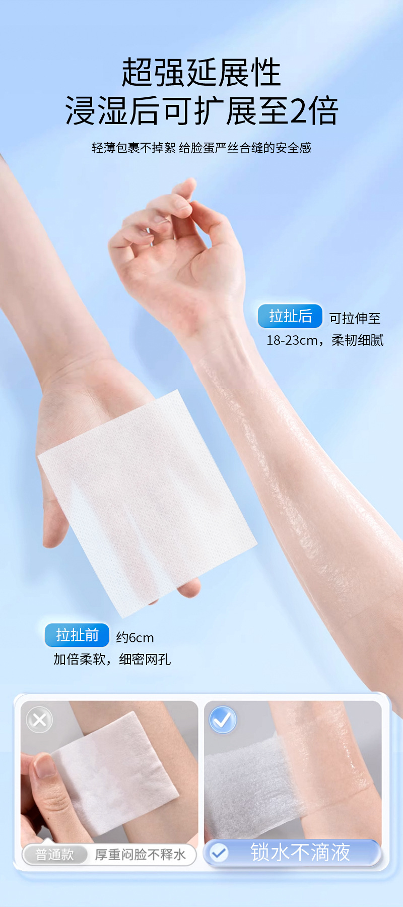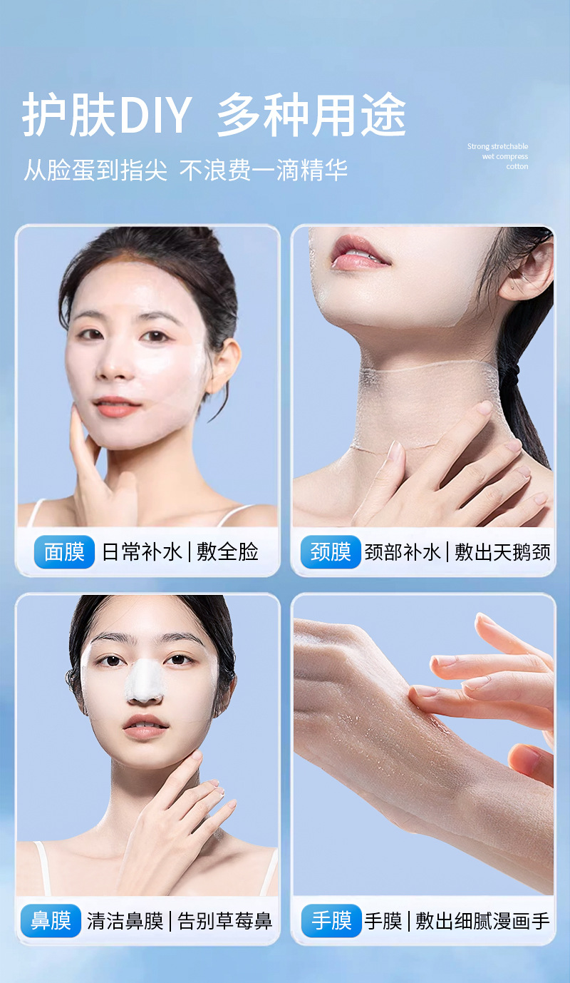✨ Discover the unique stretchable quality, making these pads perfect for contouring to your face for DIY sheet masks. Achieve full coverage and maximum absorption of your skincare treatments.