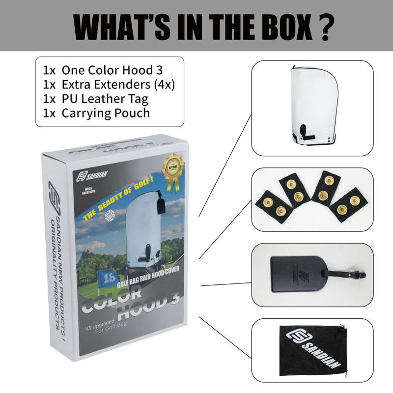- [MATERIAL] SANDIAN “Golf Color Hood3” is made with high-durability Oxford polyester fabric with TPU coated for waterproof and durability, weather-resistant and waterproof against rain, snow, dust, cuts, cracks, and scratches. All prints are superior quality thermal sublimation dye prints that will not have color fading issues.