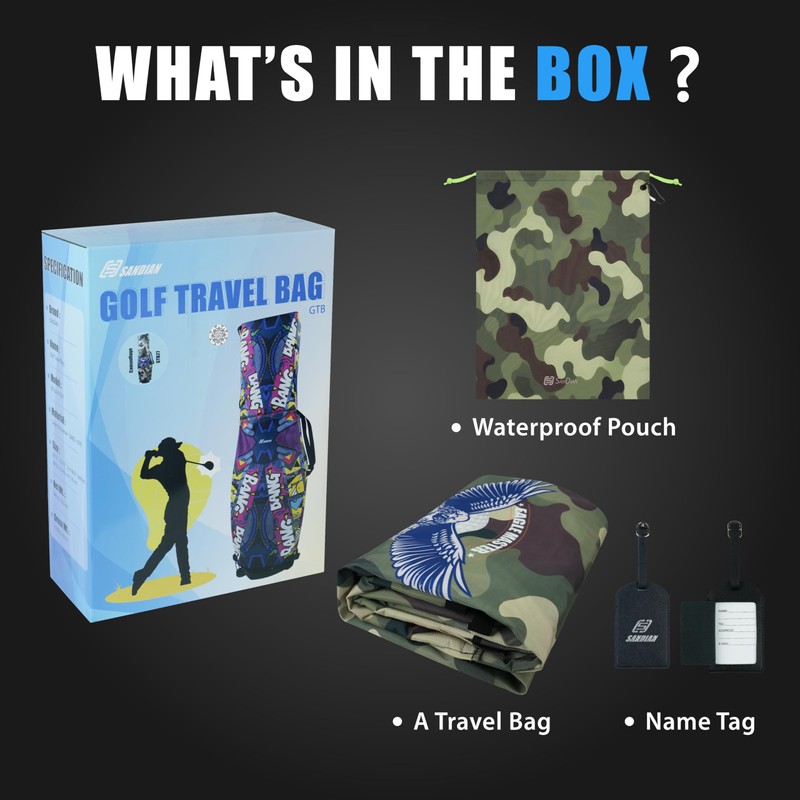 SANDIAN Golf Travel Bag Cover for Airlines Transit, Heavy-Duty Oxford 1260D, Thick Padded Club Protection Covers, Durable PU Coatings for All Weather Resistant, One Size Fits All (COMOUFLAGE)
