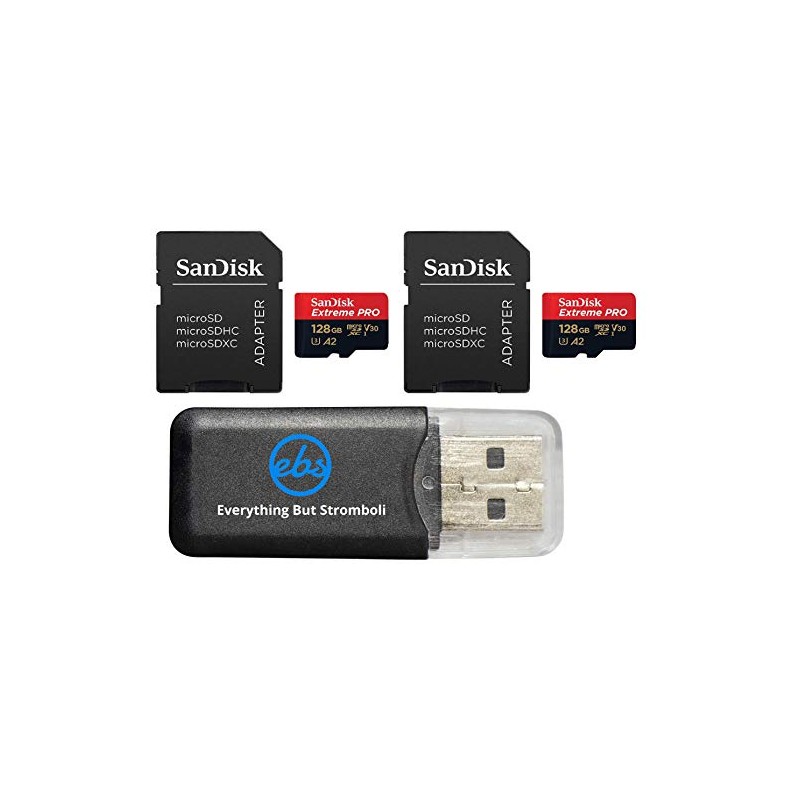 - Bundle includes (2) 128GB Micro Extreme Pro Memory card and (1) Everything But Stromboli (TM) Micro Card reader (color may vary)