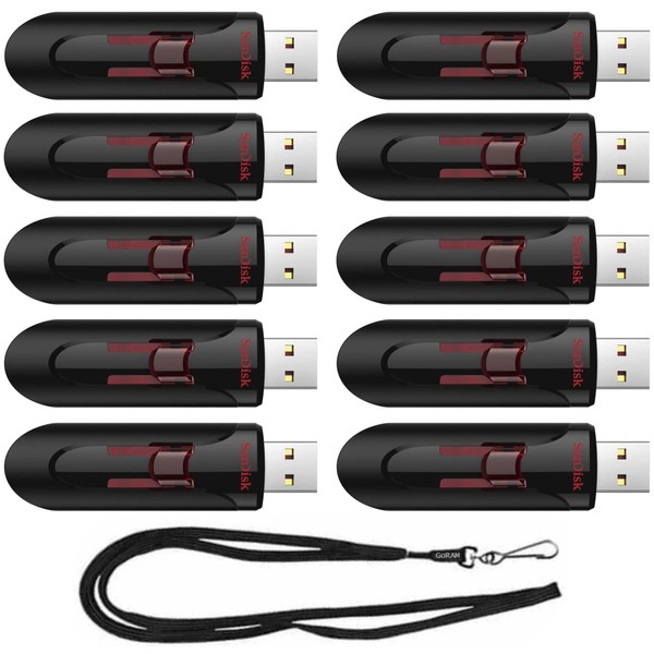 SanDisk 32GB (10 Pack) Cruzer Glide USB 3.0 Flash Drive SDCZ600-032G Bundle with (1) GoRAM Black Lanyard (32GB, 10 Pack)