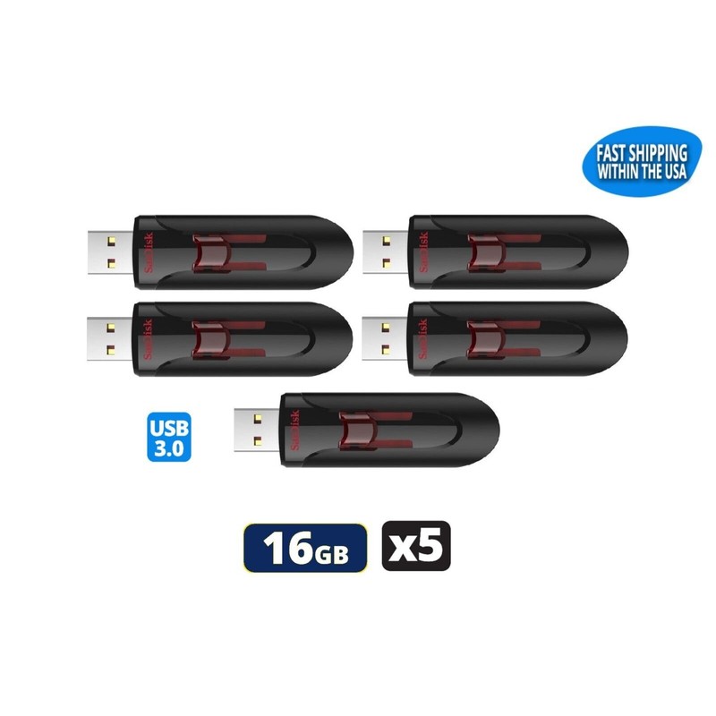 Sandisk Cruzer Glide 16GB 3.0 Flash Drive USB Thumb Drive (5 Pack)