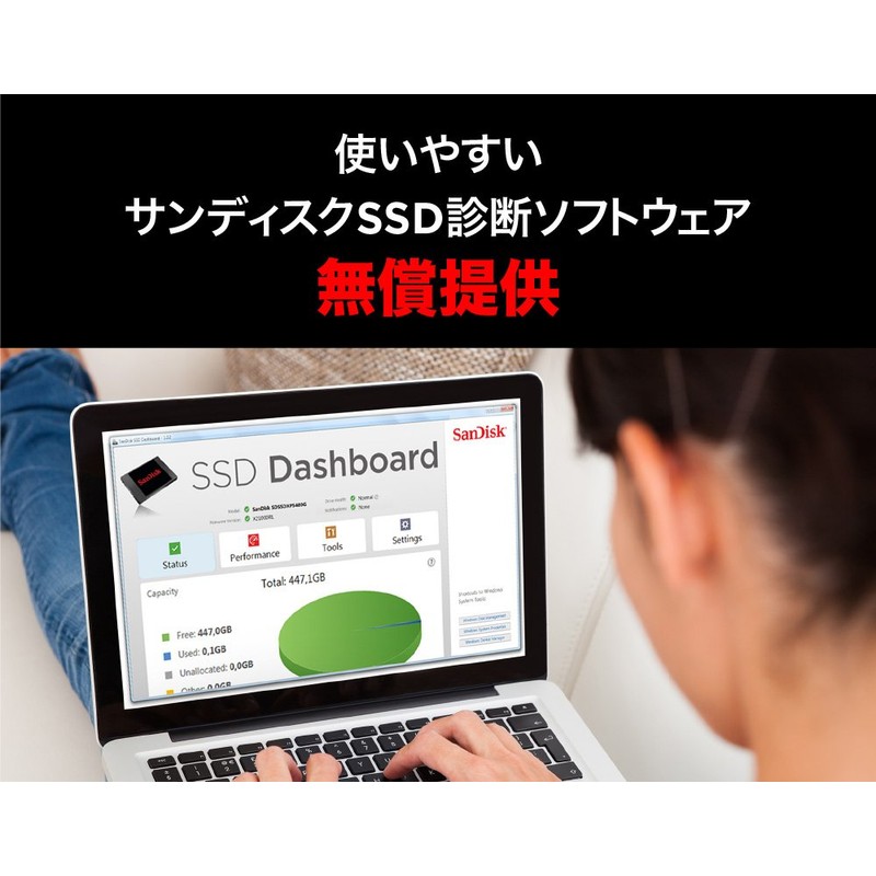 - 使いやすいサンディスクSSD診断ソフトウェア(SSDダッシュボード)により、ドライブのステータスをモニター