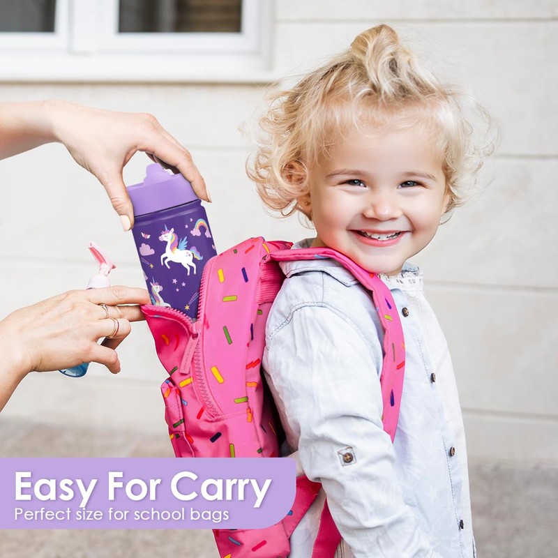 SANDJEST Unicorn Kids Water Bottle With Straw Lid 12oz Insulated Stainless Steel, Travel Tumbler, Unicorn Gifts For Toddlers Girls, Birthday, Christmas, Back To School