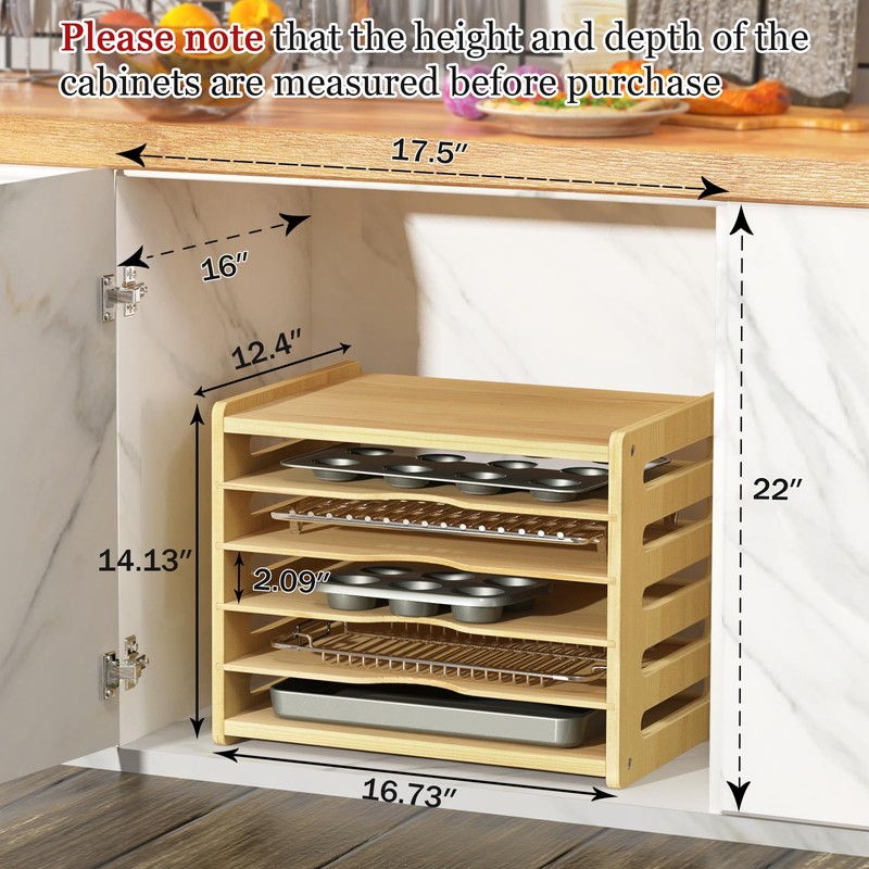 sandpaint 6 Tier Wooden Cabinet Tray Dividers, Kitchen Vertical Tray Divider Organizer, Storing pans, Baking trays, Cutting Board