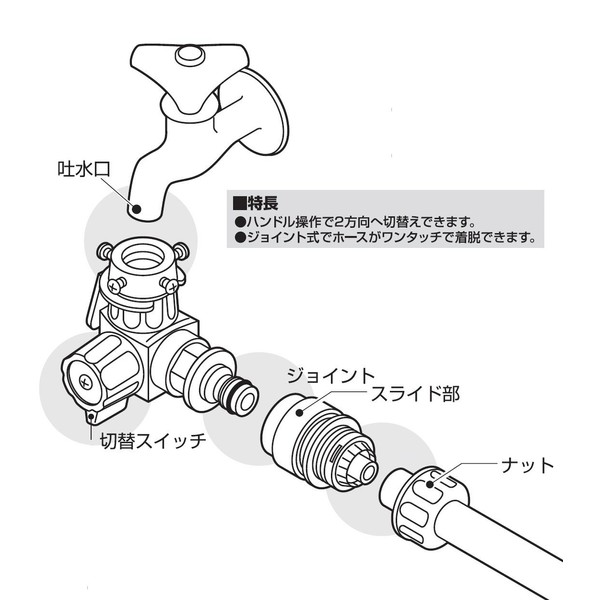 SANEI PL70-11S Switching Switch Set, Click, Branch, For Spout Outer Diameter 0.6 - 0.8 inches (15 - 20 mm), Screw Closure