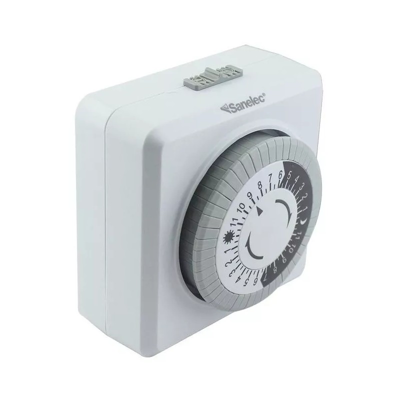 Televisores, alarmas, luminarias y lavadoras inteligentes, entre otros, pueden programarse gracias al uso del Temporizador Analógico Sanelec 4335. Te ofrece la posibilidad de configurarlos con un día de antelación en periodos de 30 minutos.