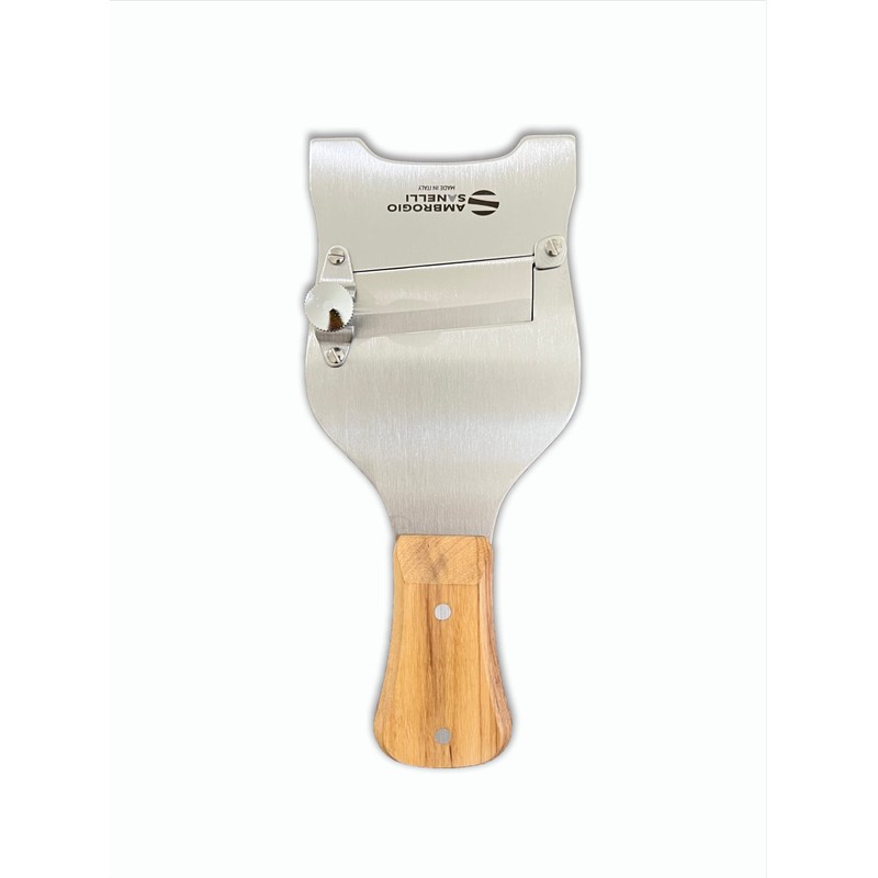 Sanelli Ambrogio - Linie Artufi-Schneider aus Edelstahl. Griff aus Olive, ergonomisch und rutschfest. Qualitätsregler für präzises Schneiden. Glatte Klinge, Edelstahl, Holz.