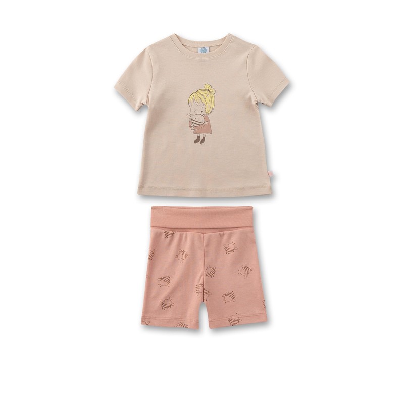 - The cute two-piece pyjamas from Sanetta offer optimal comfort. The cuff on the trousers flatters baby's sensitive skin and ensures that the trousers are very easy to adjust depending on the size. The short legs and short sleeves ensure a pleasant temperature balance on warm summer nights.