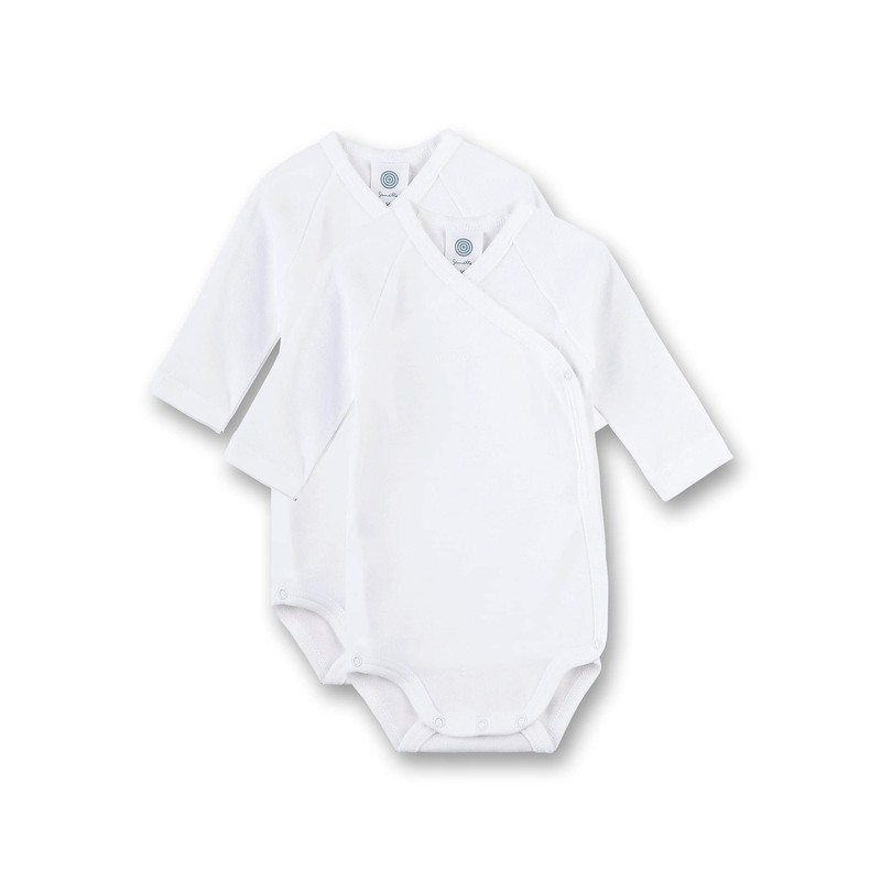 Sanetta Wrap Bodysuit Long Sleeve (Double Pack) White | Sustainable and Cute Wrap Bodysuit for Babies Made of Organic Cotton Contents: Set of 2 Baby Wrap Bodysuit, White