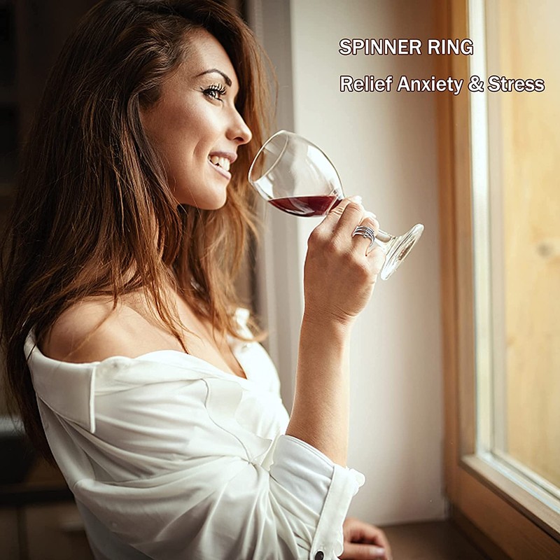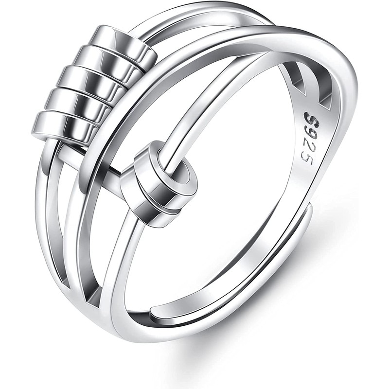 - ✊【Unique Relieving Anxiety Ring】This interwoven fidget ring is light but strong, retaining its shape and full of charm. It is full of sterling silver luster. The 7 lock rings are simple, elegant and perfectly fit. When you are anxious, you can also turn the small rings on the ring to play like a gadget ring, it will roll on your fingers, fun and cure. Help to find your inner peace.