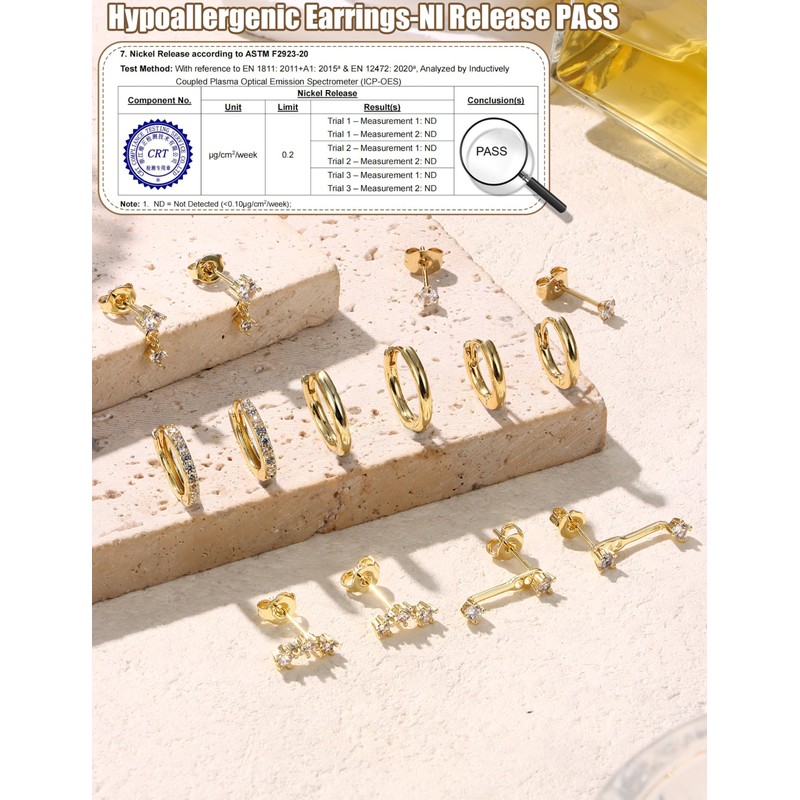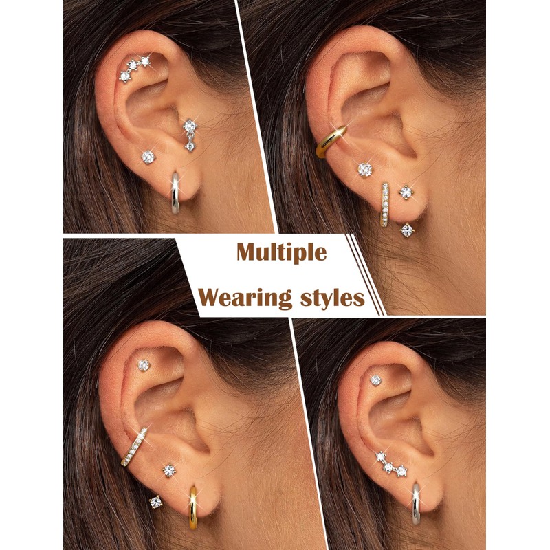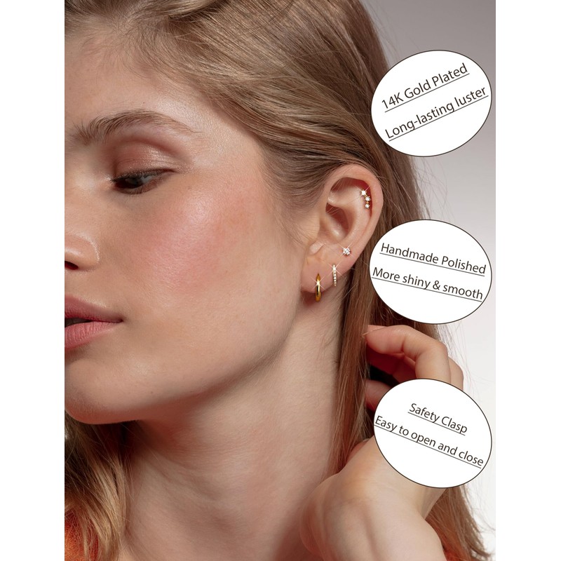 - Hypoallergenic Earrings for Women - Safe: Designed with sensitive ears in mind, these cute cartilage earrings have been rigorously tested for nickel content and validated by over 20 women with sensitive skin. They ensure safety, comfort, and a perfect fit, making them ideal for everyday wear. The small gold stud hoop earring stacks will not turn green, ensuring long-lasting beauty and wearability