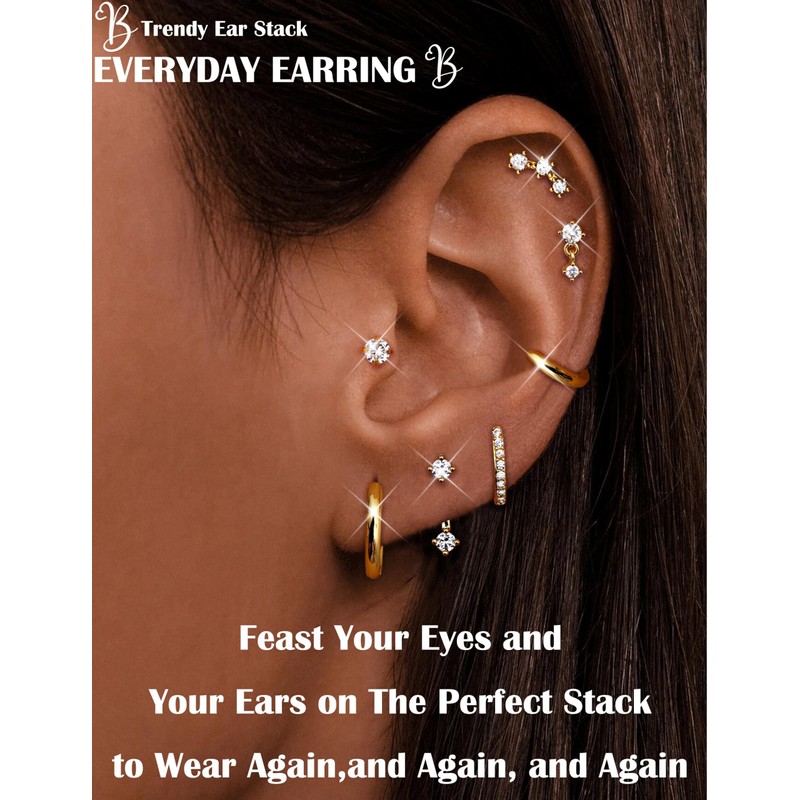 - Everyday Gold Earring Set - Dainty: Perfect for daily wear, this earring sets for multiple piercing feature minimalist and lightweight designs that add a touch of elegance to any outfit. The dainty gold stud and huggie hoop earrings for women are subtle yet stylish, making them a must-have accessory for any jewelry collection