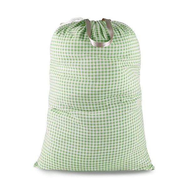 SANFERGE Extra Large Laundry Bag with Drawstring and Handle, Heavy Duty Travel Laundry Bag for Clothes Airer and Household, Heavy Duty Rip-Stop Laundry Hamper, 28" x 40", Check Green