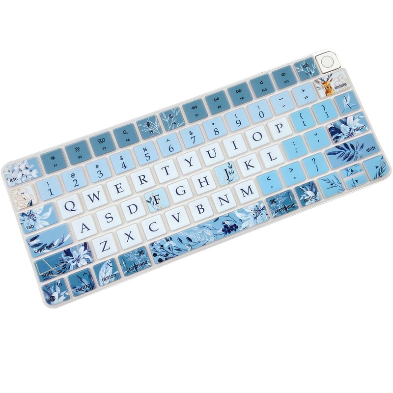 Sanfulin Keyboard Cover Skin for 2021 Apple iMac Magic Keyboard (Model: A2449/A2450) with Touch ID, Cute Printing Waterproof Silicone Keyboard Protector, Gray Blue Flowers