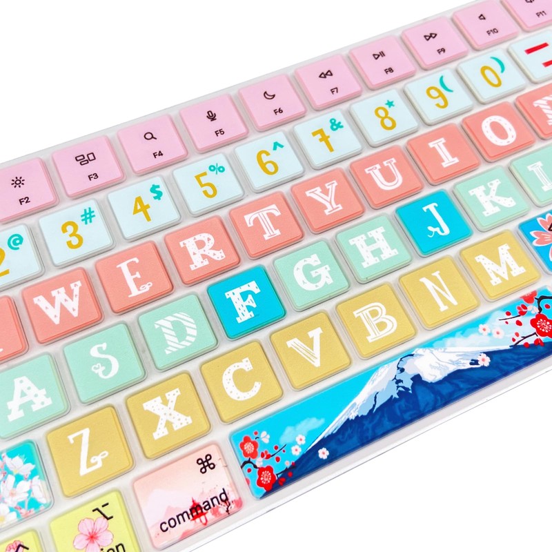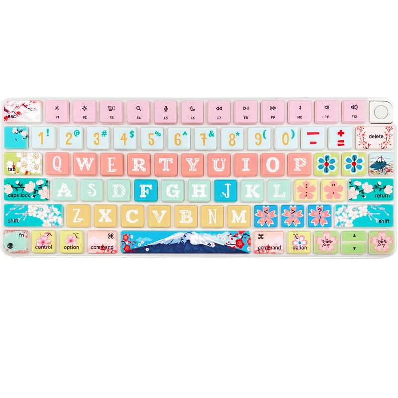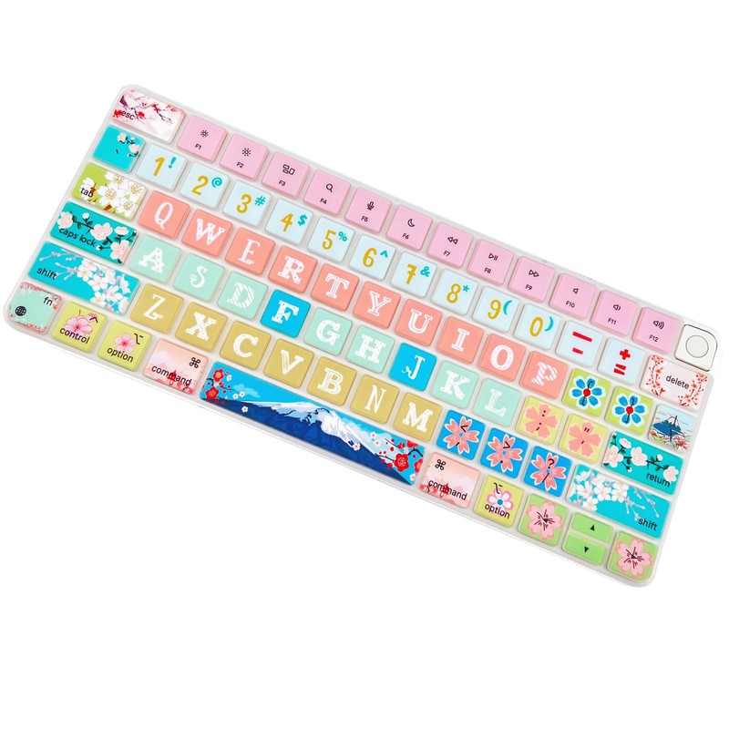 Sanfulin Keyboard Cover Skin for 2021 Apple iMac Magic Keyboard (Model: A2449/A2450) with Touch ID, Cute Printing Waterproof Silicone Keyboard Protector, Sakura