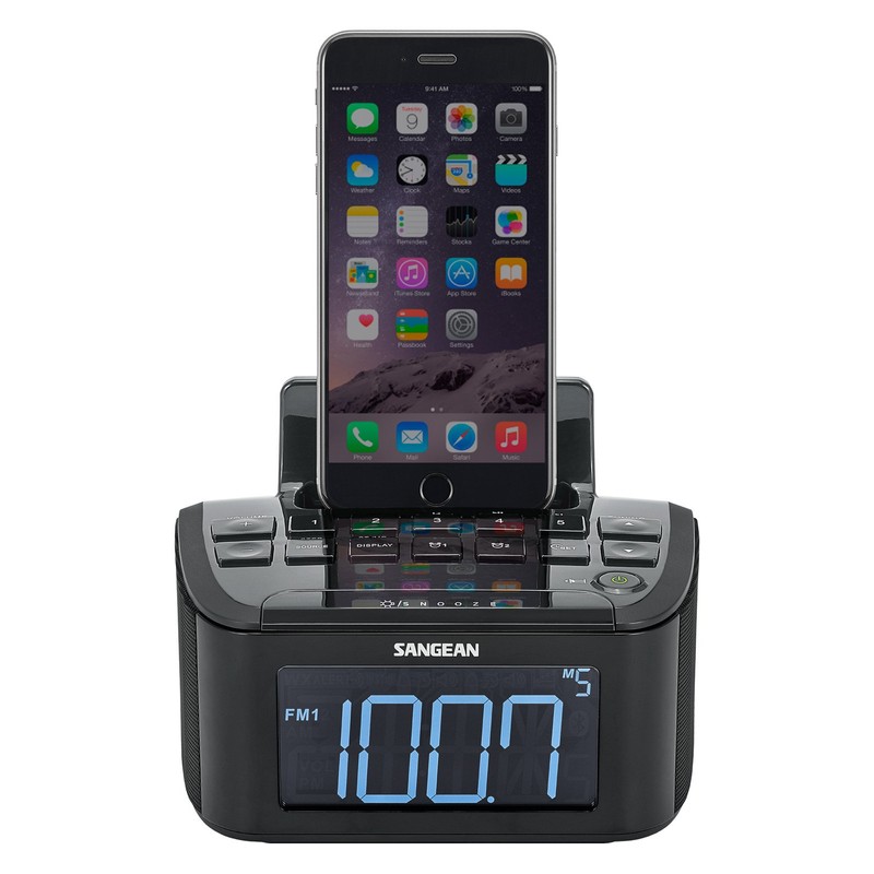 Sangean Compact AM/FM Dual Alarm Clock Radio with Large Easy to Read Backlit LCD Display & Lightning Connector Dock