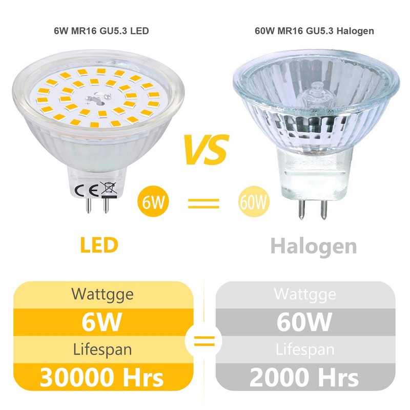 - ➥ 30 x 2835SMD LEDs, 6W MR16 LED replaces 40-60W halogen spotlights, saving over 90% energy costs.
