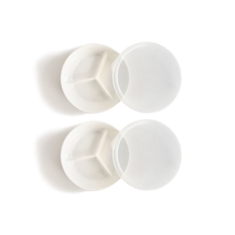 Sangsang& 1+1 round 3-compartment sharing plate with sealed lid ceramic side dish container, 11. Glass 3-compartment side dish container 1+1_rectangular (gray) + rectangular (gray) / 상상앤드 1+1 밀폐뚜껑 원형 3칸 나눔 찬기 도자기 반찬통, 11.유리3칸 반찬통 1+1_직사각(그레이)+직사각(그레이)