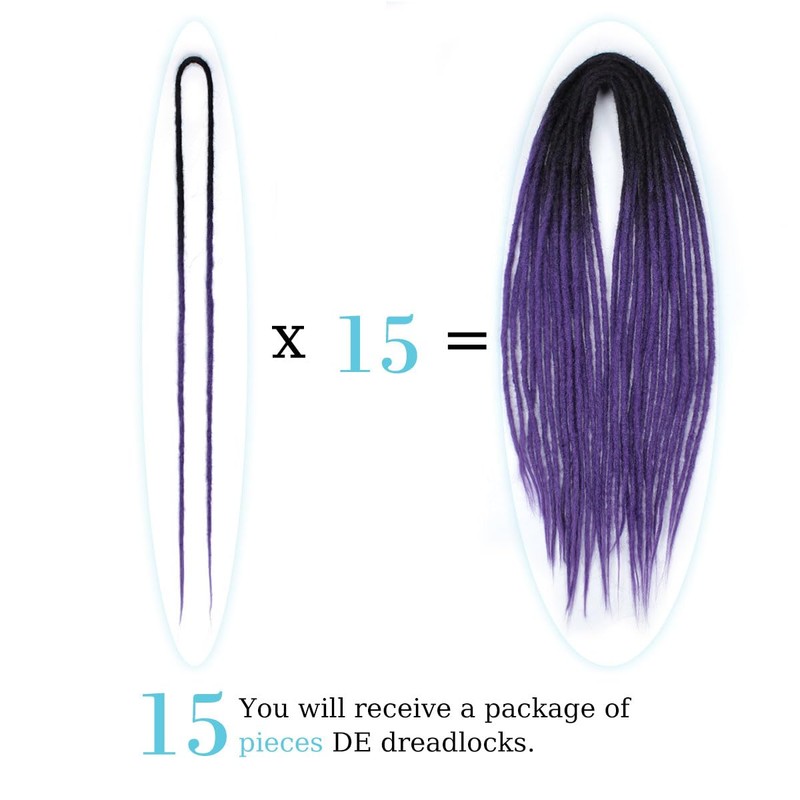 Sangtok Hair Extension, 24 inch DE Ombre Purple Thin 0.6cm 15 pcs Synthetic Dreadlocks, Reggae Hippie Braid in Dreads for Women