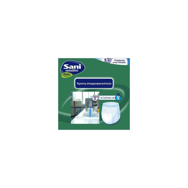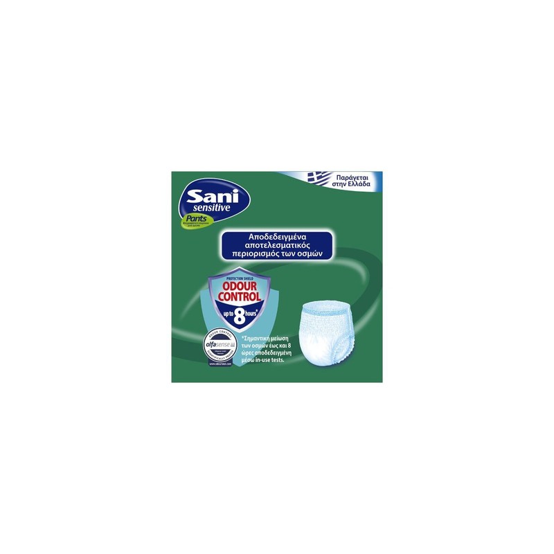 technology in the core, for proven reduction of odors for up to 8 hours (significant reduction of odors up to 8 hours scientifically proven through in-use tests by Olfasense laboratories). In addition, thanks to the Comfi-Fit technology, they ensure even greater comfort in every movement and an excellent fit to the body. With proven skin friendliness since they have international Oeko-Tex® Standard 100 certification for the absence of harmful substances. Clinically tested with excellent results by Dermatest Dermatological Laboratory (Germany). With a healthy fabric cover, aloe and vitamin E for sensitive skin protection. They are indicated for cases of medium and heavy incontinence. Dermatologically tested. Sani Sensitive products aim to create a positive environmental impact. They contain a core with fibers of plant origin, with FSC® certification. In 100% recyclable packaging. For their production, 100% green energy is used by the MEGA company, which has even received the international Zero Waste to Landfill certification at the "Gold" level, as in 2020 its production unit achieved a 99% recycling and energy recovery rate. M Waist circumference dimensions: 80-105cm. L Waist Circumference Dimensions: 95-125cm. XL Waist Circumference Dimensions: 120-160cm. Packaging: 14 Pieces