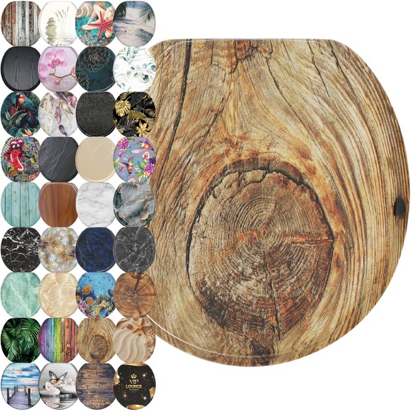 SANILO Wooden Toilet Seat with Soft Close [ROUND] - Decorative, Quiet & Slow Close Molded Wood Seat - With Strong Bumpers & Hinges - Adjustable Fit – Rustic