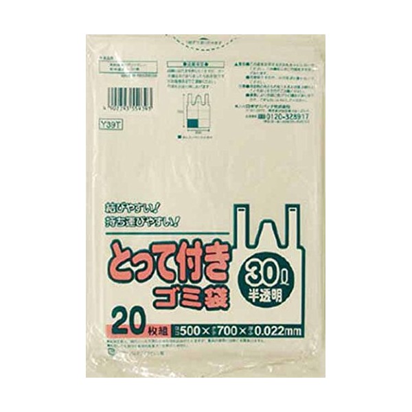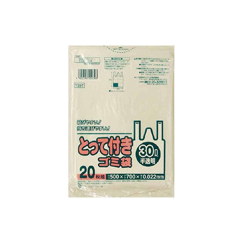 Sanipack Y39THCL Y39T Trash Bags with Handle, Translucent 7.8 gal (30 L), 20 Sheets