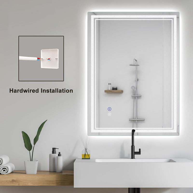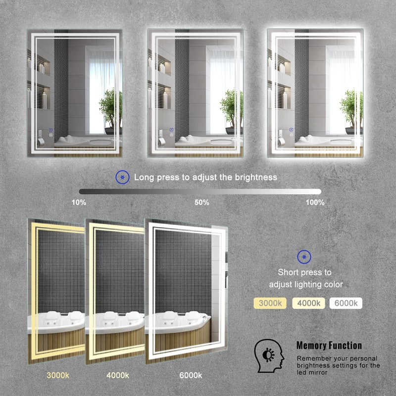 - 【Bathroom mirror with lights Independent anti-fog function switch】The independent anti-fog function switch makes it very convenient for you to use. If needed, you only need to click the anti-fog function button to start