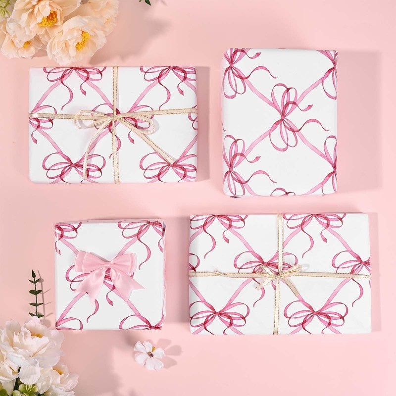 - Delicate Design:Our wrapping paper are patterned with bow, mainly colored in pink, The pink bow style is cute and elegant, quite in line with bridal shower, engagement, bachelorette party, etc.