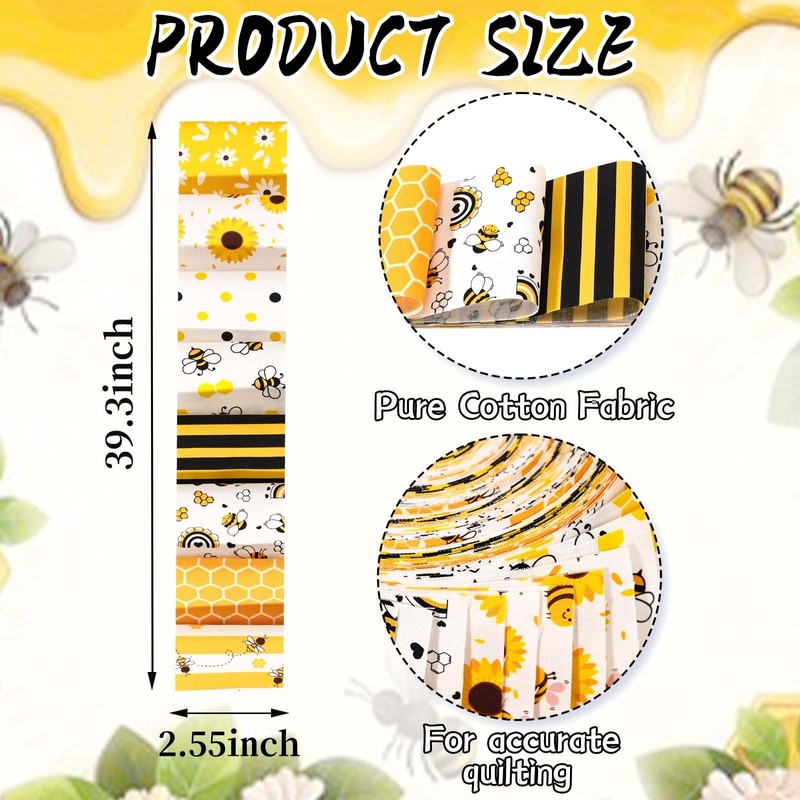 - Versatile applications: These summer bees precut fabric strips can be used for quilting, making patchwork bags, clothes, wallets, tablecloths. They can also be used for mending clothes, quilts, curtains, as well as for making gift decorations, holiday ornaments, albums, doll clothes, etc.