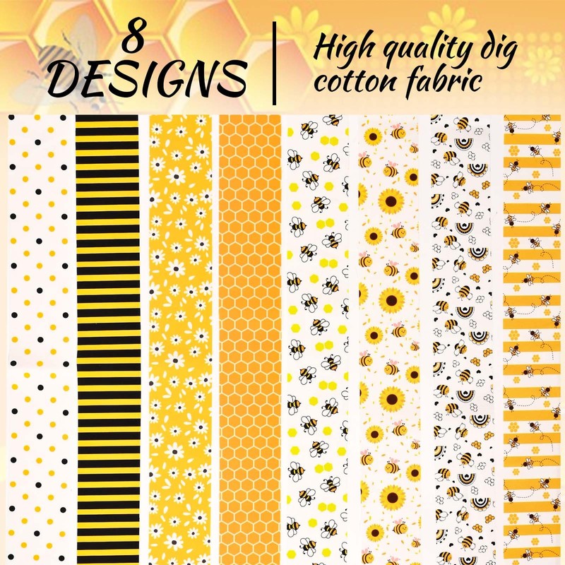 - Exquisite pattern design: These cotton summer yellow bees patchwork strips are designed with 8 different patterns, featuring a theme of bees floral pattern, with vivid colors and exquisite lines. You can match different patterns according to different occasions.