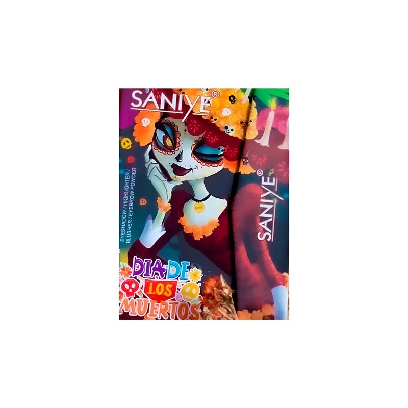 Crea un maquillaje de impacto con la Paleta de Sombras y Rubor Saniye, una completa edición especial de Día de Muertos. 💖 Este versátil estuche tipo cartera contiene 20 sombras en acabados mate y brillante, un rubor, un iluminador y dos polvos para ceja. Es una paleta todo-en-uno que te permite crear looks completos y profesionales para esta temporada festiva. Aplica los tonos mate para dar profundidad y los brillantes para un toque de luz. No olvides usar un primer para mayor durabilidad y fijar todo con un spray al finalizar. Con este kit, tu creatividad no tendrá límites. ✨