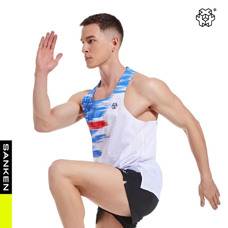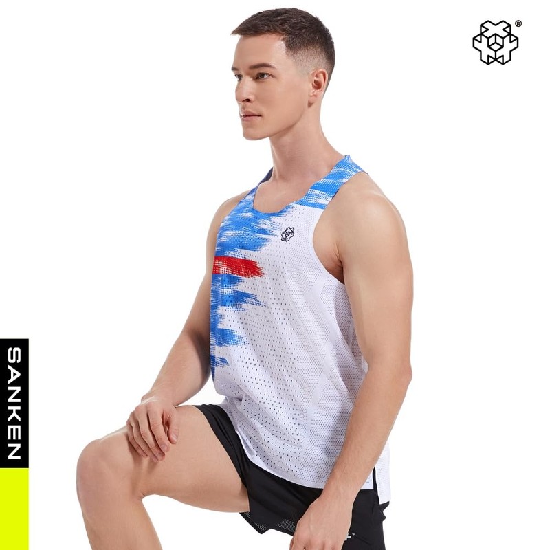 Sanken Marathon Tank Top Lightweight Running Singlet Shirt Dry Fit Workout Sleeveless T-Shirt (US, Alpha, XX-Large, Regular, Regular, D02-2B)
