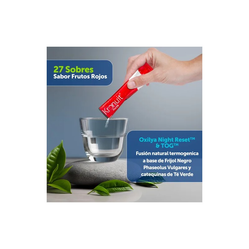+ Fusión Termogénica Natural de TOG (catequinas de Té Verde) y Oxylia Night Reset (Frijol Negro Phaseolus Vulgaris).