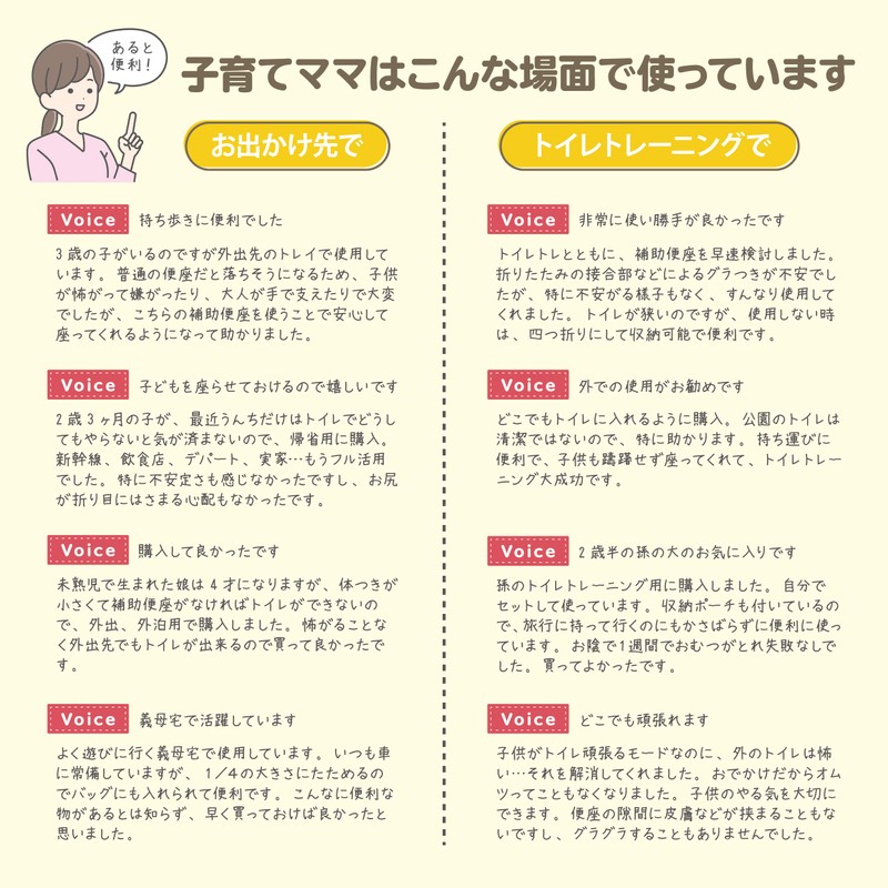 - An auxiliary toilet seat that can be used for home or for western style toilets