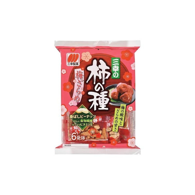 Sanko Plum Flavoured Kaki No Tane, rice cracker and peanuts Snack 4.62oz, pack of 1