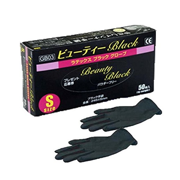 SANKO SUPPLY Beauty Black Latex Gloves S Size (6.5-7), Pack of 50