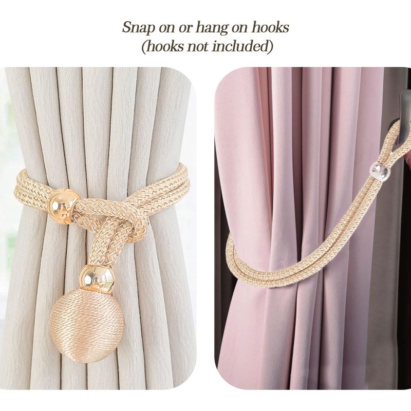 - Simple Design: Double knitting rope curtain tiebacks, add more stylish. Simple woven ball decoration curtain drapes holdbacks make such a difference in the overall look of the curtain, easily update your home decor. It is all-match tieback, whether your home style is American country, Rustic or Mediterranean style, Nordic simplicity.