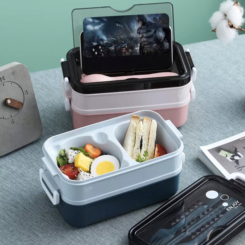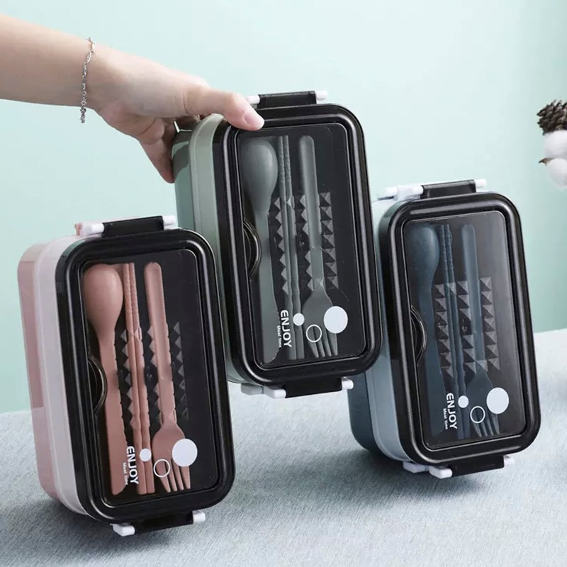 - Practical lunch box - This lunch box has 3 compartments that keep food separate and do not mix. The design of the removable food tray makes it easy to prepare meals and clean. Fork, spoon and chopsticks are included in a separate compartment for storage. This tupper is suitable for children and adults to carry their food.